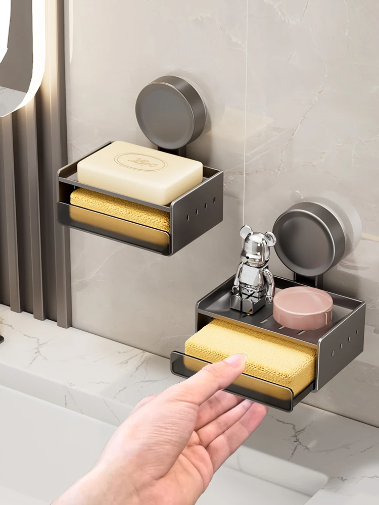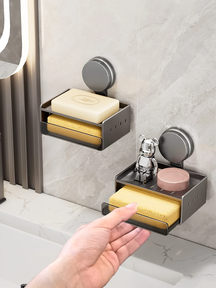 吸盤付き石鹸ホルダー - 壁掛けタイプでバスルームをスッキリ整理!水切り機能付きで、石鹸を清潔に保ちながら美しいデザインでおしゃれな空間を演出します。