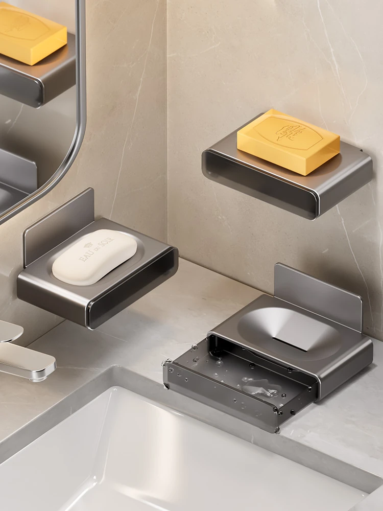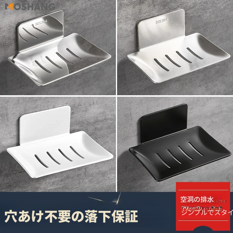 モシャングバスルームソープディッシュ - クリエイティブな水切りデザイン、ステンレス製、穴を開けずに取り付け可能!衛生的でおしゃれな壁掛け収納、あなたのバスルームをスタイリッシュに演出します。