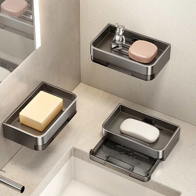 壁掛け式二段ソープホルダー|穴あけ不要で簡単取り付け!洗面所やバスルームに最適なソープディッシュ|美しいデザインで空間を有効活用!