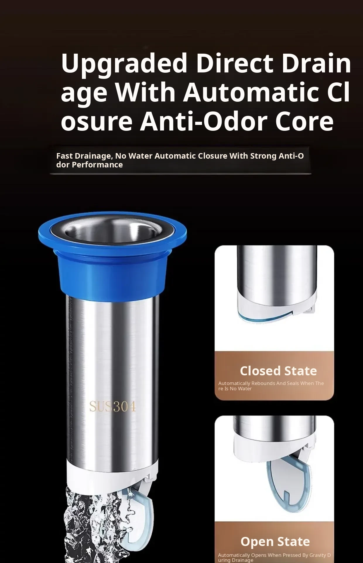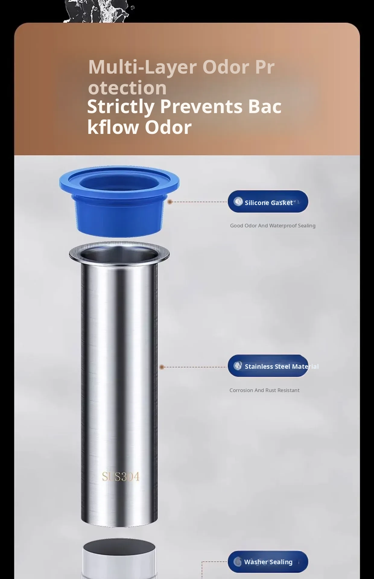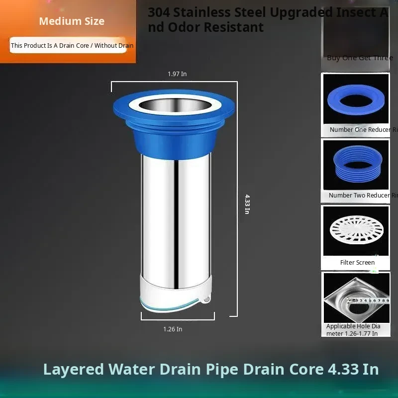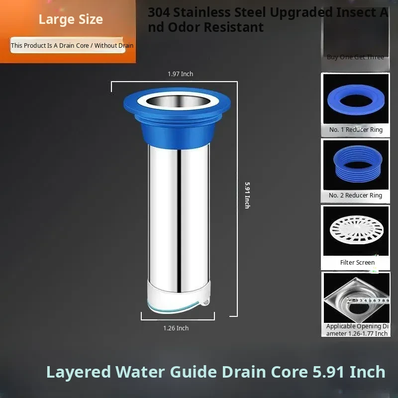 Extended 304 Stainless Steel Drain Core - Universal Anti-Cross Odor Solution for Sewer Leaks and Pests, Perfect for Your Home Drainage Needs!