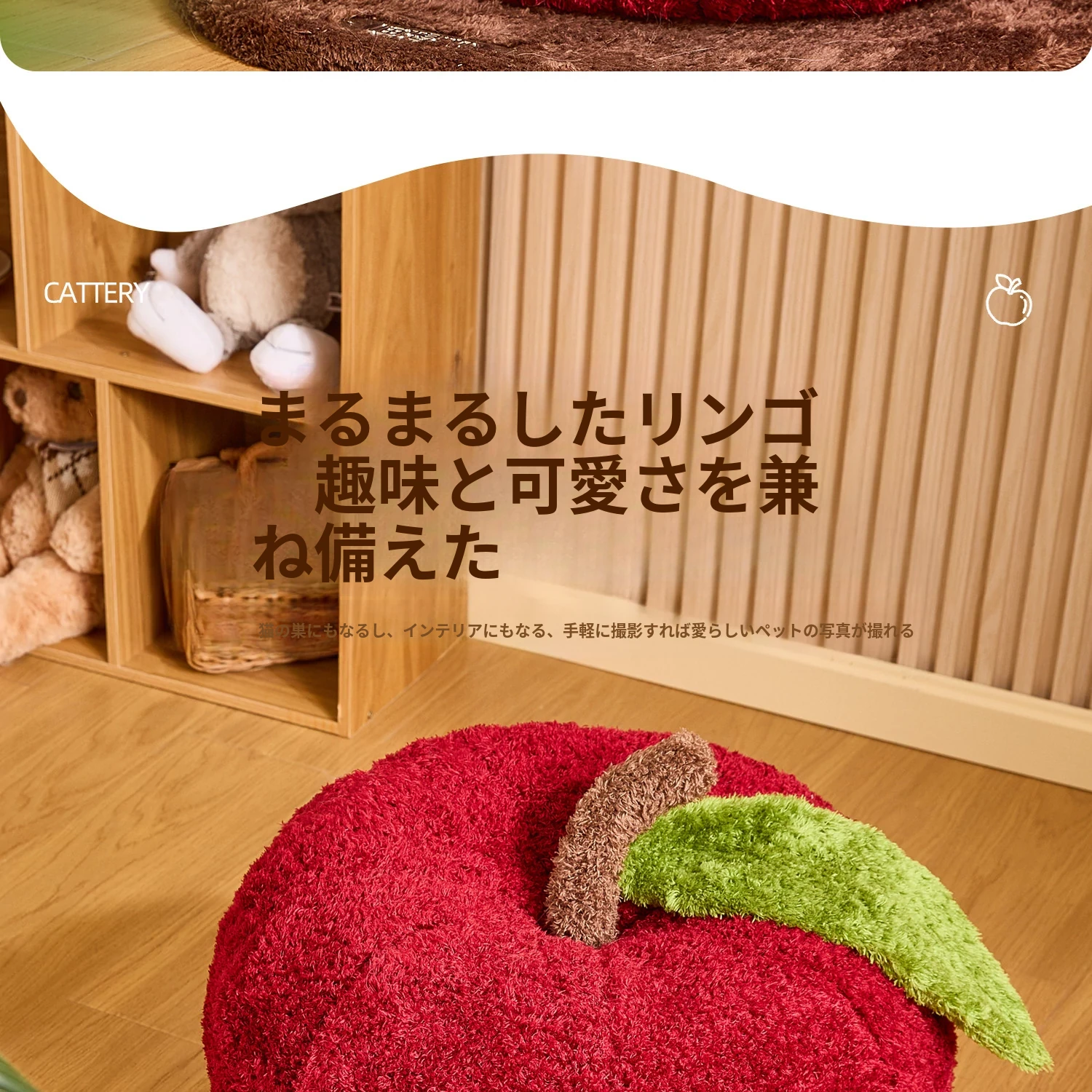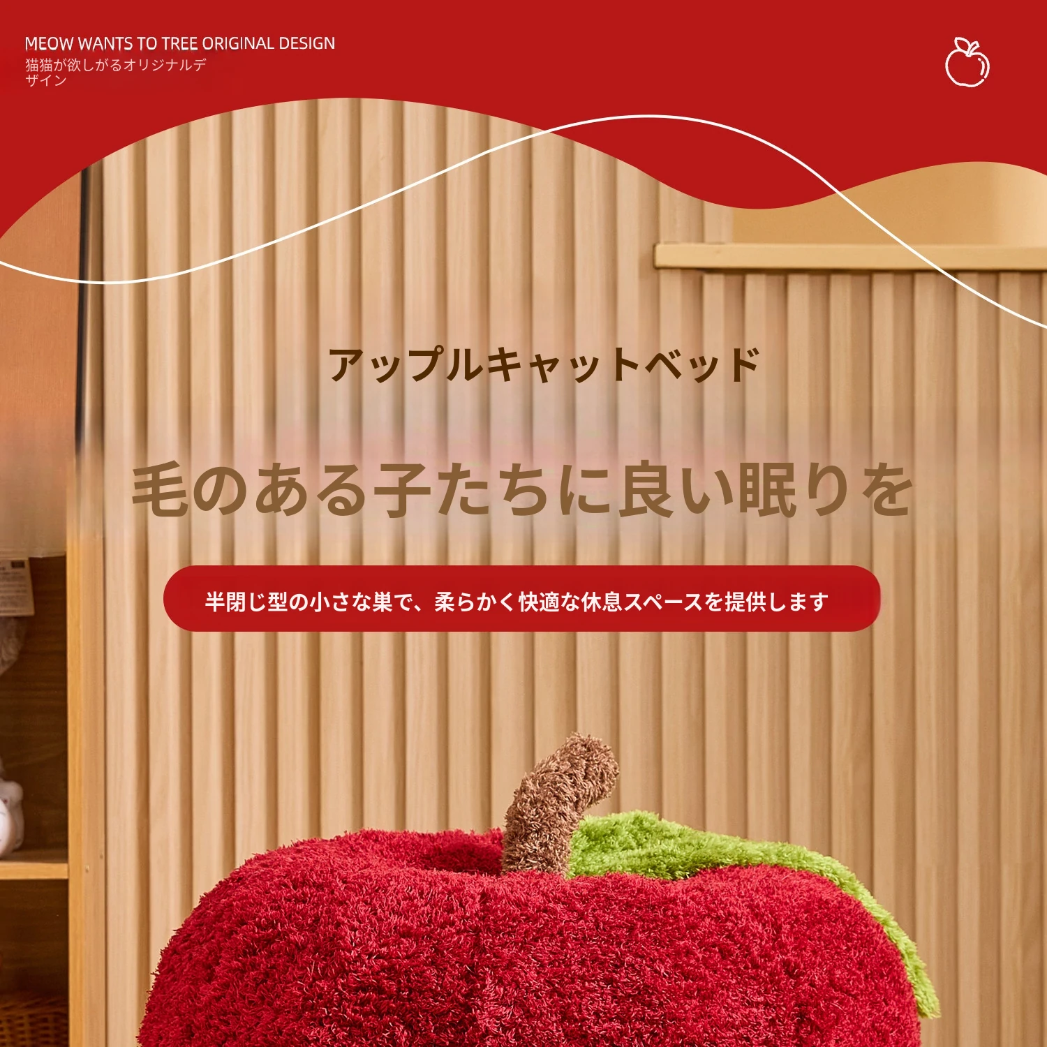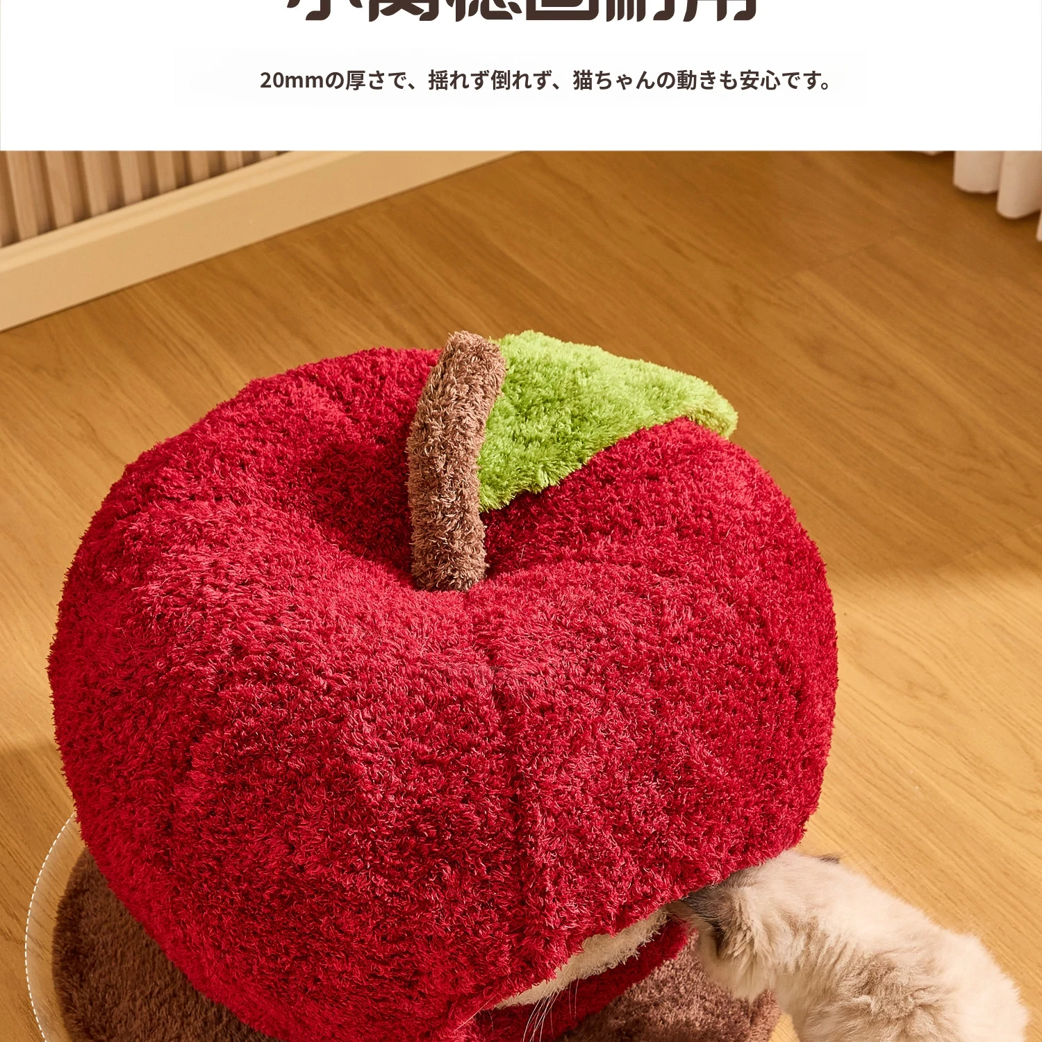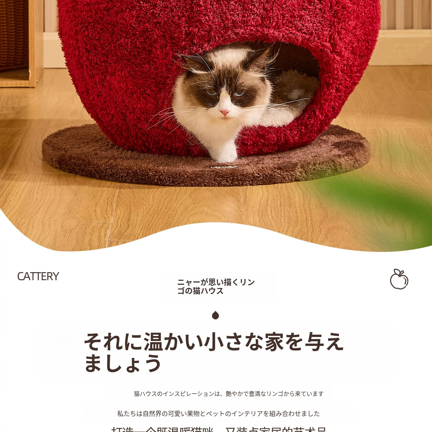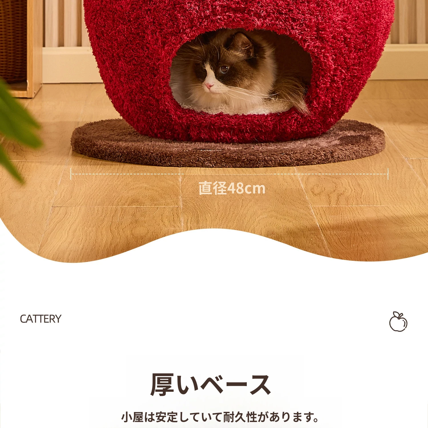 猫好き必見!可愛い封閉式デザイン「ミャオシャンツリー」アップルキャットハウス。夏でも場所を取らず、四季を通して愛猫に安心感を提供する快適な眠り空間。