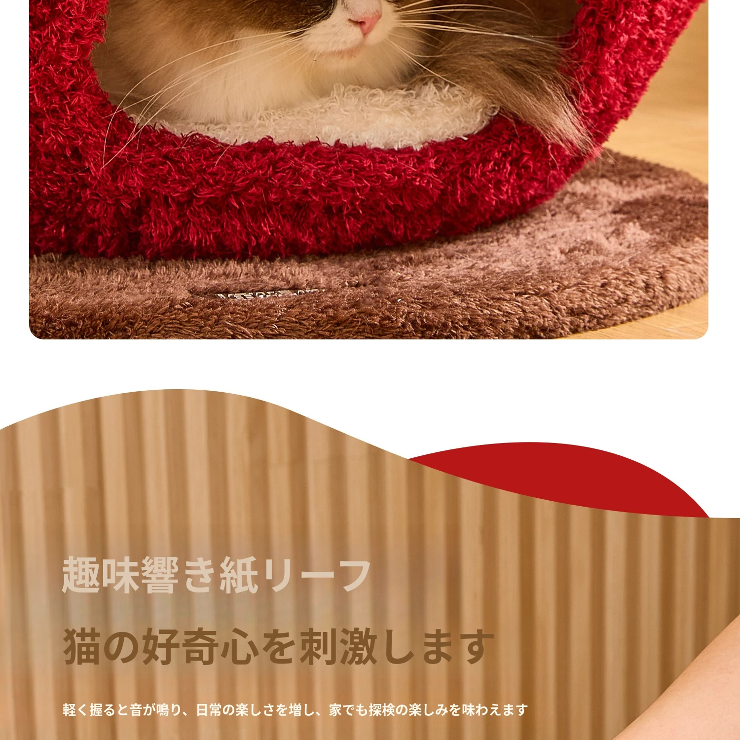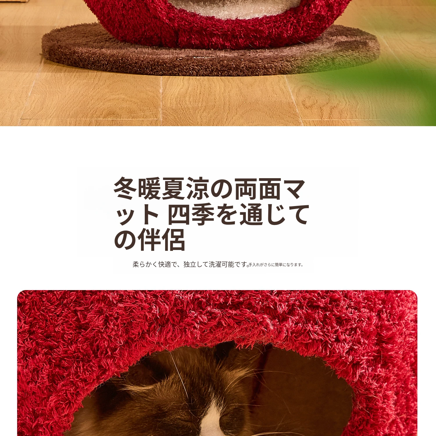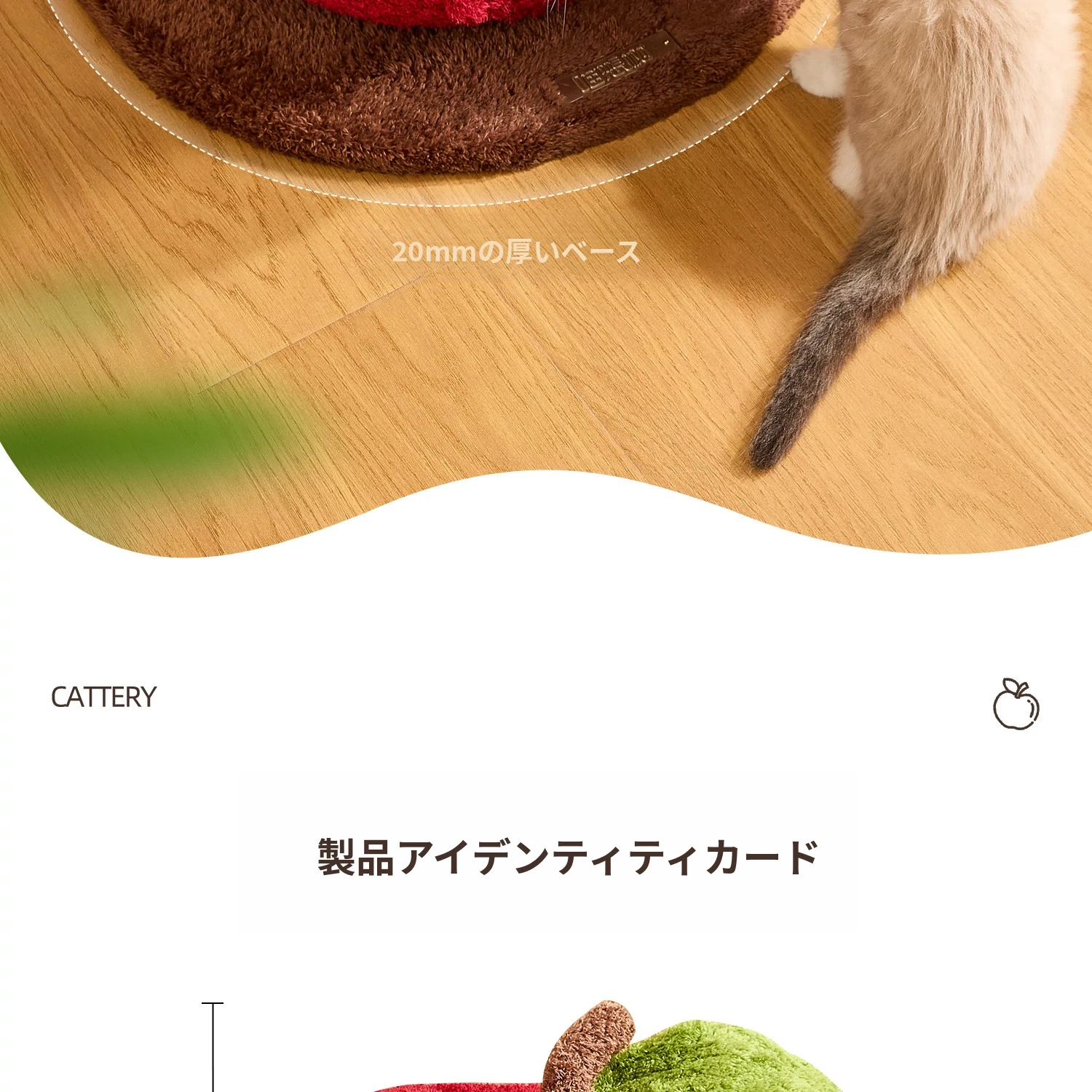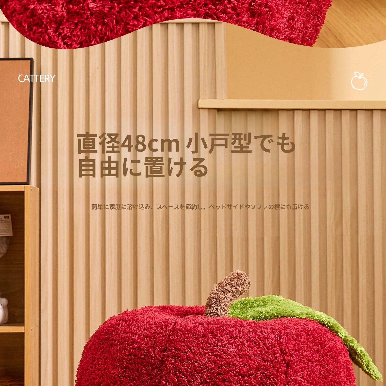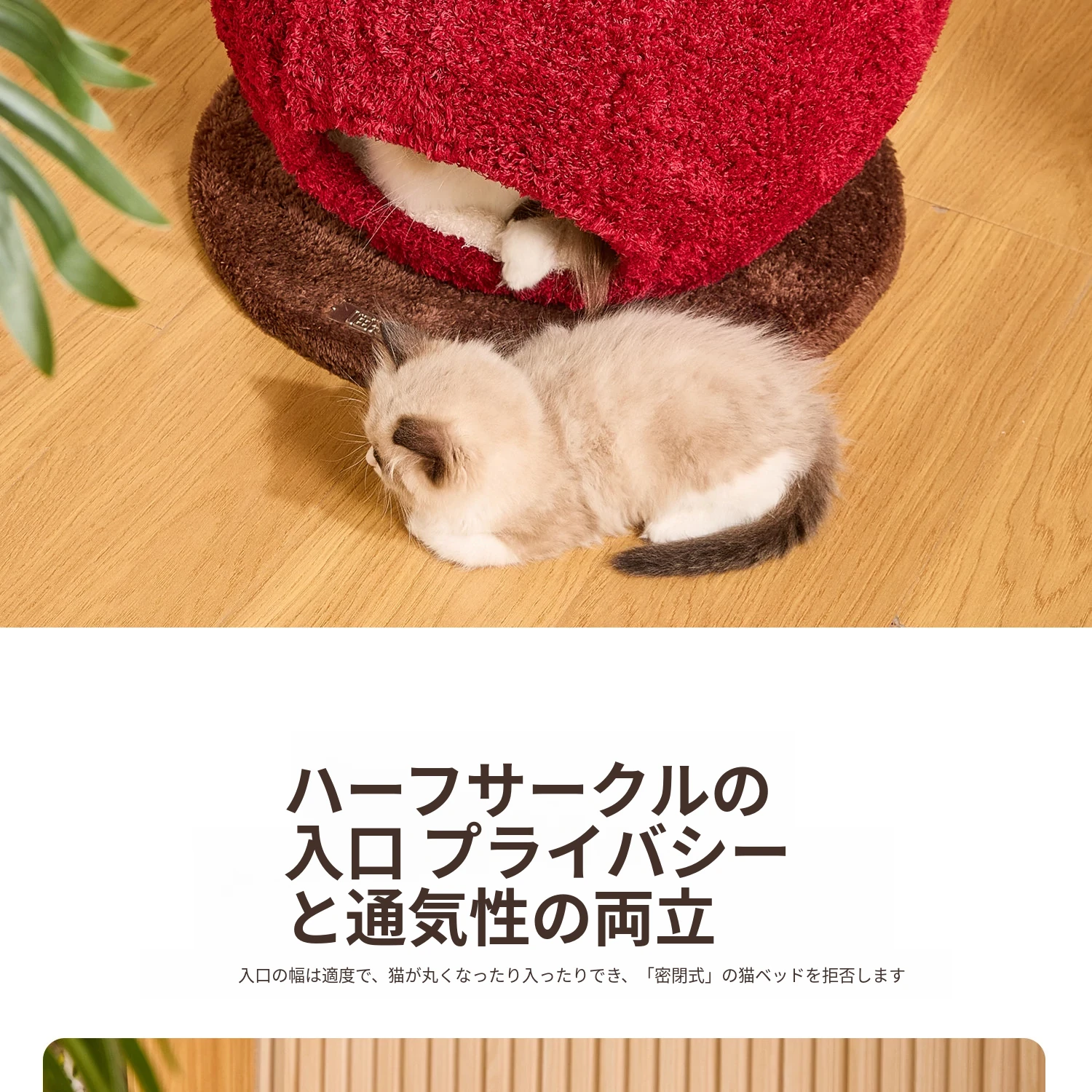 猫好き必見!可愛い封閉式デザイン「ミャオシャンツリー」アップルキャットハウス。夏でも場所を取らず、四季を通して愛猫に安心感を提供する快適な眠り空間。