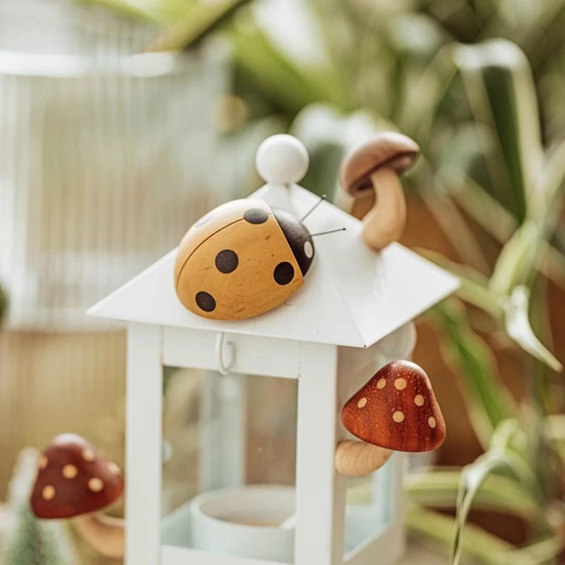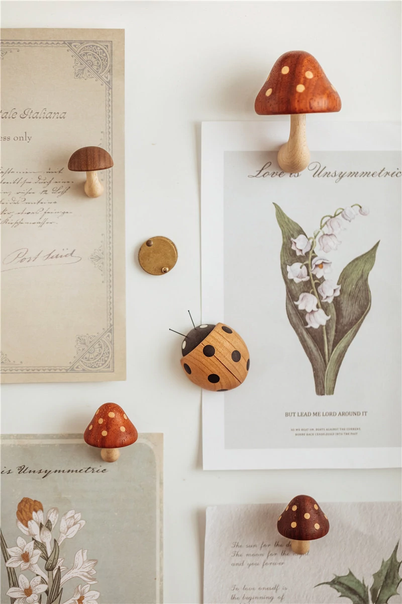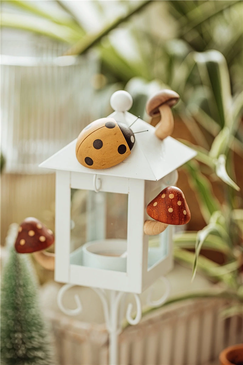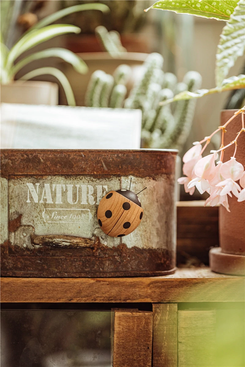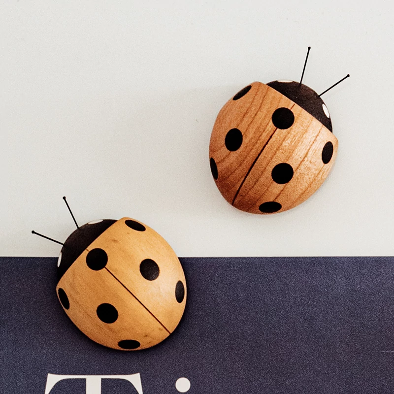 原上城のカラフルなてんとう虫マグネット冷蔵庫用、手作りの木製デザイン!おしゃれで可愛いインテリアにぴったり、新居祝いにも最適なオリジナル装飾アイテム!